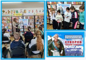 К 295-летию со дня рождения русского полководца А. В. Суворова в Дружненской сельской библиотеке прошёл час истории «Гордость России – А.В.Суворов». В ходе мероприятия присутствующих познакомили с личностью Александра Суворова, ключевыми событиями жизни полководца с основными датами и сведениями о жизни великого полководца. Ребята оценили его вклад в историю России.