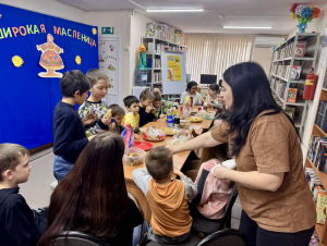 22 февраля Долгогусевская сельская библиотека провела для своих читателей час народных традиций «Сударыня – Масленица», посвященную веселому народному празднику – Масленице. Руководитель Шуляцкая М.М. познакомила ребят с историей возникновения праздника, а также с традициями, обычаями и обрядами празднования Масленицы. И, конечно же, на празднике было главное угощение – блины. Ребята отвечали на вопросы викторины, отгадывали загадки. Также мы не могли не вспомнить о народных гуляньях на празднике: ребята поучаствовали в конкурсе поедания блинов на время, а также водили хоровод и играли в игру «Ручеек».