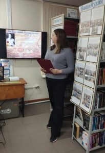 19 апреля ко дню памяти Героя советского союза Голенева Степана Трофимовича Долгогусевская сельская библиотека провела час памяти «Он был твоим, Россия сыном!». Гостям мероприятия рассказали о жизни земляка, о его героическом подвиге и смерти. Познакомили с книгой В.К. Архипенко «Созвездие Ольшанцев», которая повествует о Константине Ольшанском и его товарищах – десантниках, наводивших ужас на гитлеровцев. Участники мероприятия познакомились с предметно – иллюстрационной книжной выставкой «Он был твоим, Россия сыном!», а также с альбом и документами, которые были собраны поисковым отрядом школы № 15 пос. Верхневеденеевского и заведующей Долгогусевской библиотекой Больбатовой В.А. много лет назад. Присутствующие узнали много нового и интересного о герое и его подвиге.